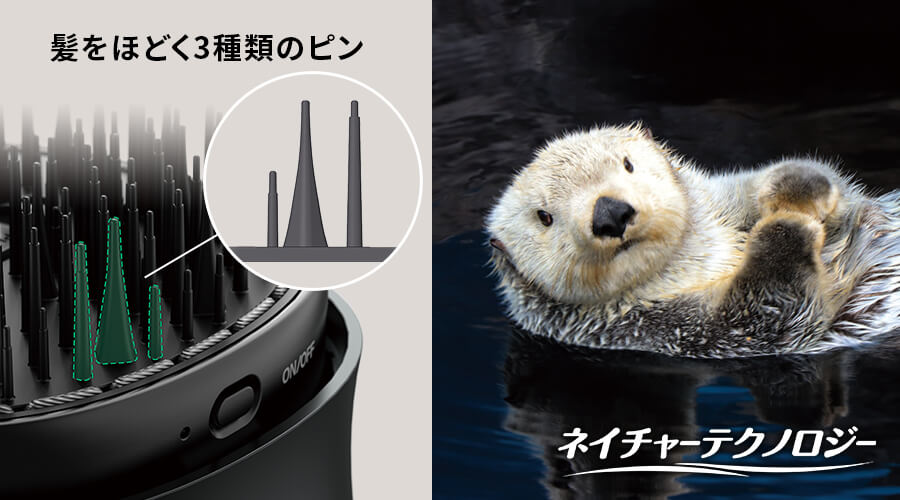 太いピンと長短のピンを波状に組み合わせた独自のブラシ形状で、髪の絡まりを軽い力でほどきくし通りをなめらかに。 (※3)