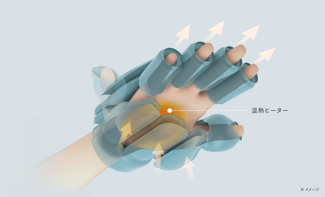 エアバッグが前方に動いて 伸ばす「指ストレッチ」機能搭載