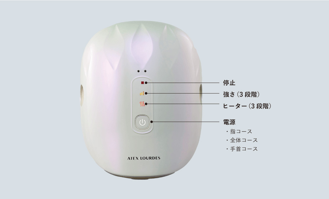 電源ボタンを長押しすると「指コース」がスタート。以降は押すたびにモードを切り替えられます。