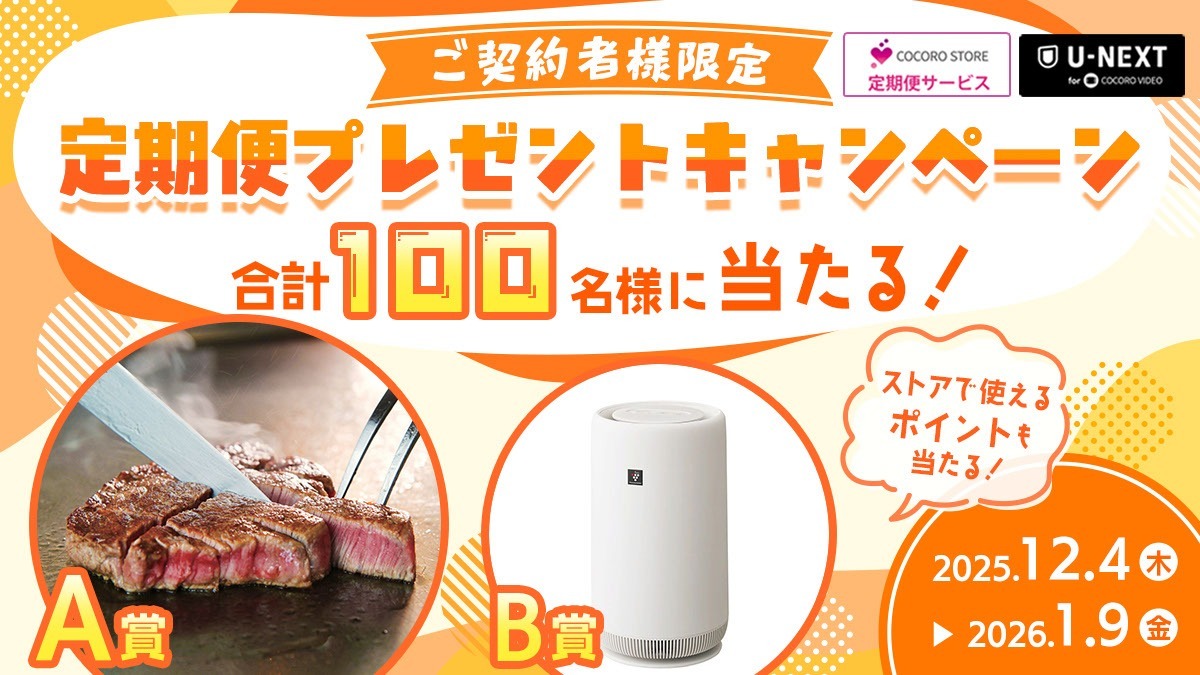 ・応募期間中に対象の定期便サービスまたはU-NEXT for COCORO VIDEOをご契約中、または新規ご契約いただいたお客様